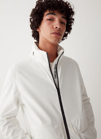 Moška jakna iz vodoodporne (5000mm/H2O) in zračne (5000gr/m2/24H) raztegljive mehke tkanine. Obdelava, ki odbija vodo. Nov model z zložljivo kapuco v ovratniku, zategi na koncu rokavov za prilagajanje širine ter neprozoren tisk logotipa Colmar Originals na notranjem preklopu. Popolna kombinacija tehničnosti in minimalističnega sloga. Zaradi lahke teže je idealna za spopadanje s pomladnimi dnevi.