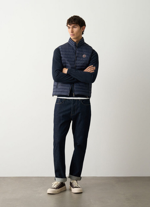 Moški brezrokavnik iz ultra lahke, 100 % reciklirane tkanine z vodoodbojnim premazom in lahko podlogo iz puha. Ikoničen kos iz 100-gramske kolekcije Colmar Originals je na voljo v novih pomladnih odtenkih.