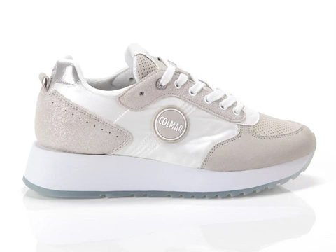 Časovno neodtujljiv slog, ti ženski čevlji TRAVIS PRIME so idealni za vsakodnevno uporabo. Sijoči najlon se prepleta z mikroperforiranimi semišnimi vložki in detajli iz metalnega mikrovlaknastega usnja. Izdelani v nevtralnih tonih, dinamični, zadržani in preprosti, se odlično podajo k sproščenim ali športnim outfitom. Simbolizirajo Colmarjevo filozofijo, temelječo na eksperimentiranju.