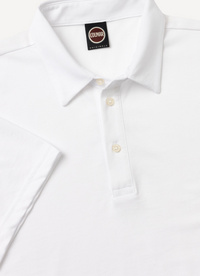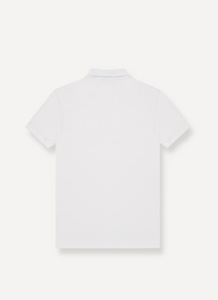 Moška polo majica iz raztegljivega bombažnega piquéja s srajčnim ovratnikom. Ta zgornji del z diskretnim logotipom na rokavu odlikuje minimalističen, enobarven videz.