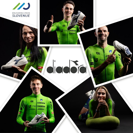 Diadora je že tretje leto uradna casual obutev Kolesarske zveze Slovenije. Med uporabniki so priznani slovenski kolesarji, kot sta Primož Roglič in Tadej Pogačar. Ambasadorja blagovne znamke v Sloveniji sta tudi olimpijska deskarka Gloria Kotnik in igralec Domen Valič, ki poudarjata udobje, dizajn in identiteto znamke.