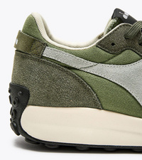 Race Suede SW, klasičen tekaški čevelj iz 80-ih, se vrača v praznovanje diadorine športne dediščine. Podplat zvesto posnema izvirno različico, medtem ko je zgornji del prenovljen z bolj sodobnim slogom. Platno na četrtini in vampu je obdelano z voskom, kar mu daje očarljiv učinek obrabljenosti.