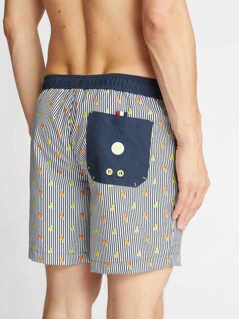 Te izjemno mehke kopalne hlače iz recikliranega poliestra kombinirajte s polo majico in že se lahko odpravite na morje ali plažo. Kopalke s potiskom po celoti, pas z zatezno vrvico in notranje hlačke iz mikromrežice za udobje in svobodo gibanja.
