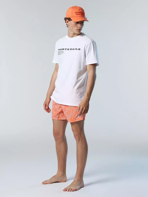 To poletje izrazite slog s temi kratkimi kopalnimi hlačami s tropskim vzorcem, ki so popolne za vodne športe, izlete na plažo in dneve ob bazenu. Oblikovani z mislijo na slog in planet, so izdelani iz recikliranega najlona, ​​da zmanjšajo količino odpadkov, poslanih na odlagališče. Povišan s poletno sprano prevleko in našitkom z logotipom na levi nogi za značilen pridih North Sails.