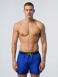 Elegantne, praktične in osveščene o planetu: te moške kopalne kratke hlače so nujno potrebne v vašem kovčku. Ponašajo se s klasičnim dizajnom z kontrastnim pasom, izdelane pa so iz recikliranega poliestra. Opremljene s barvnim obližem North Sails za prepoznaven dotik in praktično torbo, da lahko z lahkoto preidete s plaže v bar.