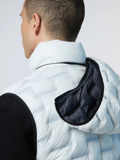 Izjemno lahek, vendar z največjo toploto: spoznajte svojega novega junaka prehodne garderobe. Laserski telovnik, ki se ponaša z edinstveno konstrukcijo iz vezanega žakarda, je izdelan iz recikliranega najlona, ​​odpornega na puh, z reciklirano sintetično podlogo za lažji odtis. Opremljen s kapuco na zadrgo za zaščito pred dežjem in notranjim mrežastim žepom za mobilni telefon.