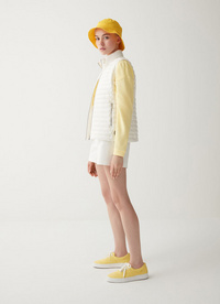 Women’s sleeveless jacket padded with light natural down and made of super light, recycled fabric with water-repellent treatment. The slim fit adds an extra touch of femininity to this iconic 100 g Colmar Originals model, offered in new spring shades.