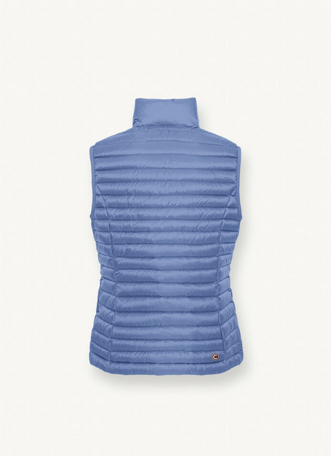 Women’s sleeveless jacket padded with light natural down and made of super light, recycled fabric with water-repellent treatment. The slim fit adds an extra touch of femininity to this iconic 100 g Colmar Originals model, offered in new spring shades.