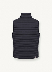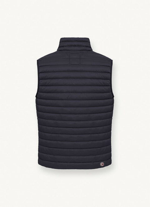 Men's sleeveless jacket made from ultra-lightweight matt recycled fabric. Padded with light natural down, it’s a practical, comfortable garment packed with details. An iconic 100 g Colmar Originals model with padded collar now comes in new nuances for the spring season.