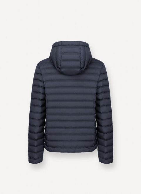 Men's jacket with an attached hood, made from soft, semi-glossy, polyamide tubular fabric with an environmentally-friendly water-repellent finish and downproof treatment. The distinctive structure actually allows the down to be injected without creating stitched channels, guaranteeing greater technical properties and less migration of the down. Stylish and practical details are in perfect harmony in this new 100-gram piece that is perfect for the autumn season.