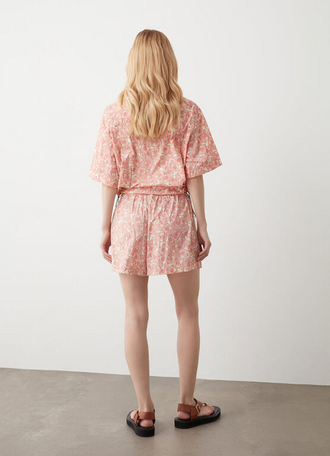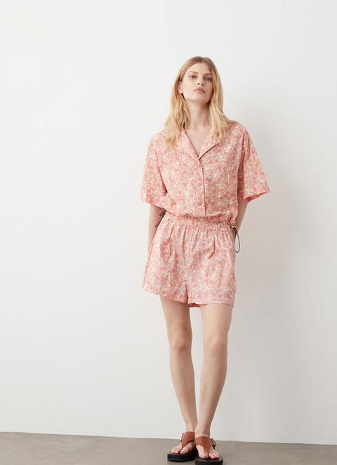Modern women's short-sleeve shirt made from a very lightweight nylon with water-repellent treatment. A special all-over print featuring the Colmar Originals logo recalls holidays, postcards and stamps, for an on-trend vintage look. Matching buttons and drawstring at the bottom to adjust its shape and fit.