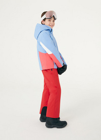 Girls’ jacket with detachable hood made of waterproof (15,000 mm) and breathable (15,000g/m2/24) laminated mechanical stretch fabric. Seams that create harmonious colored geometries with each other thanks to the choice of fresh colors, give vitality and dynamism to this classic ski garment. A joyful and playful way to tackle the slopes. Inside, the combination of the lining with graphene fibers, which distribute heat evenly, with the Clo® Univa Eco wadding, an ecological thermal insulation made with recycled fibers, contributes to making this model suitable for all climatic conditions. The different weights of wadding used depending on its position on the garment make it functional and comfortable. The garment has been designed in accordance with the safety standard of children's clothing, so the adjustments of the hem are inside the jacket. The use of recycled wadding and fabric and the eco-sustainable water repellent Teflon EcoElite™ treatment are part of the Colmar Green Path project, aiming to respect the environment as much as possible.