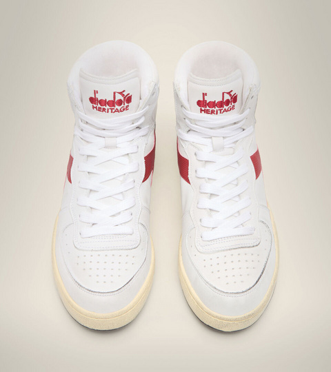 MI Basket Used, the unisex diadora Heritage trainer with high top. Full-grain leather upper with stonewashed treatment.