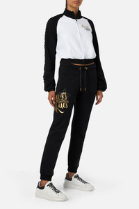 Regular fit long trousers with logoed waist in elastic band and big logo in foil gold print. An a unmistakable style for a sophisticated and fashionable woman.