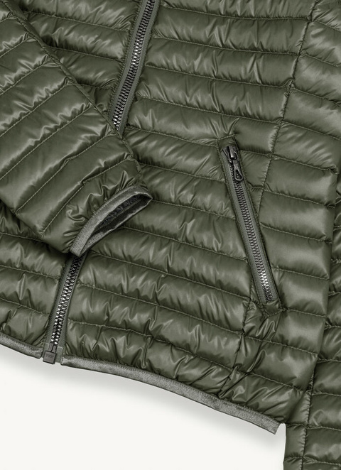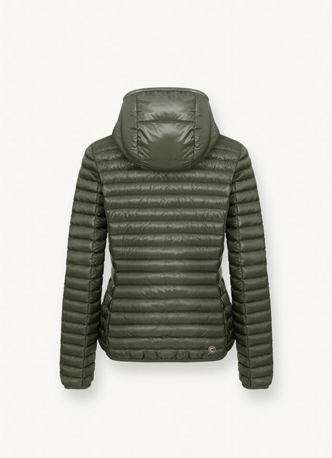 Women's jacket padded with light natural down with regular quilting and made of water-repellent recycled fabric with a soft touch. Sporty details such as regular quilts all over the body, the elasticated band in matching colour that borders the hood, bottom and cuffs, do not detract from the femininity, highlighted by the iridescent effect of the fabric and the waist fit. Live the autumnal season with the style of the iconic 100 grams down jackets by Colmar Originals.