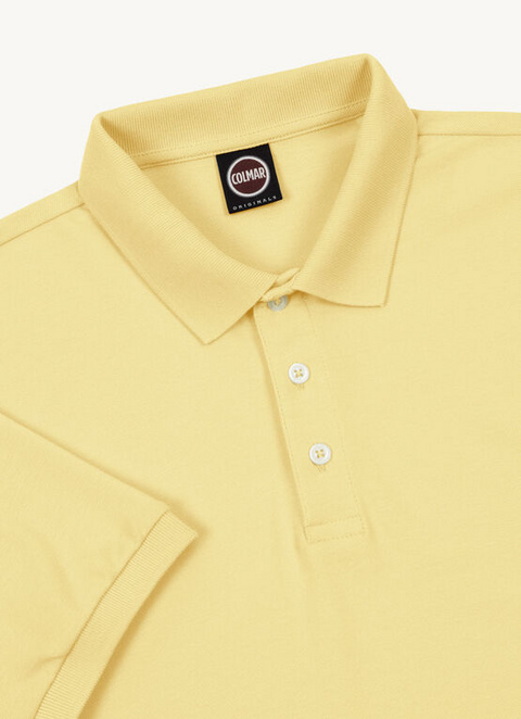 Polo shirt in soft stretch cotton piqué with tone-on-tone ribbed knit collar and armholes. Comfortable, thanks to the side slits, it’s enriched by the Colmar Originals patch, appliqué on the left sleeve. Informal and sporty at the same time.