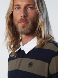 This rugby-style polo shirt is characterised by a striped pattern and a contrast gabardine collar. A timeless wardrobe icon, this garment is crafted from certified organic cotton jersey, manufactured in line with socially responsible and eco-friendly processes.
