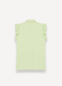 Women’s polo-shirt made from soft stretch cotton piqué fabric. The sleeves are embellished with ruches that add a touch of femininity to the garment.