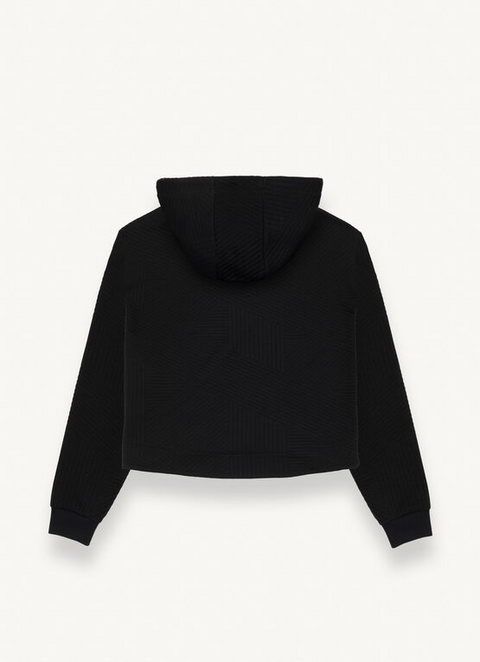 Women's hoody made from a viscose blend. The raised crisscrossing design created by the jacquard fabric on this model is unusual and original. Comfortable and feminine, it can be paired with casual outfits for an urban look or with tracksuit bottoms for a head-to-toe sporty look.
