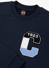 Inspired by college, the Colmar Originals capsule collection is characterised by patches that revisit the logo, taking us back to the brand’s roots. Men's sweatshirt in soft cotton blend fleece. Classic round neck style with appliqué features in American college style. An iconic garment to be worn with sweatpants for a totally sporty look or with 5-pocket trousers for a more urban look. Color matched ribbed collar, cuffs and bottom hem.