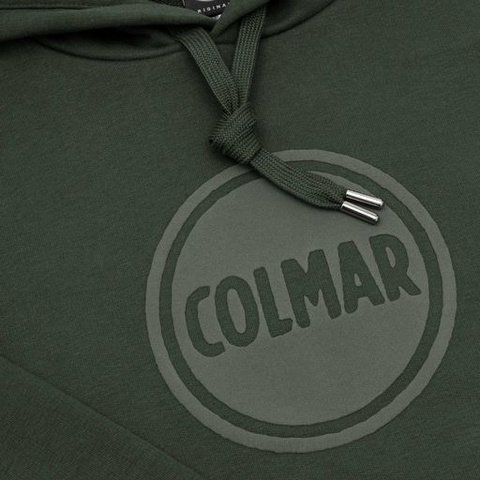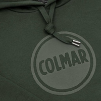 Men's hoodie made by soft terry cotton blend fleece. "Colmar" thick matching tone effect print on chest. Cuffs and bottom are finished by ribs in tone to the base fabric. The drawstring at the hood allows you to adjust the width once worn. Regular fit.