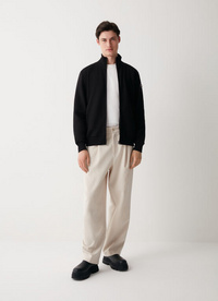 Men's sweatshirt, full zip, made of brushed cotton blend fabric. Reminiscent of the classic bomber jacket, this model has inset side pockets and high collar. The ribbed details make it interesting and practical. Suitable for any style, it goes perfectly with all outfits.