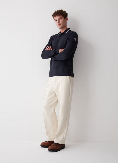Men's sweater in soft stretch piqué. Classic long-sleeved polo shirt characterised by the presence of the brand's colours on the stripes of the neck and on the buttons. A comfortable and practical all-rounder which can be combined with every look: as the main feature in autumn or to be worn in winter under a sweatshirt or pullover.