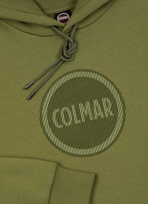 Men’s hooded sweatshirt made from brushed cotton-blend fabric. Practical and comfortable, this sporty model with an understated look is embellished by the 3D Colmar logo print made with a distinctive vertical striped effect. The ribbed details and drawstring on the hood help improve the fit.
