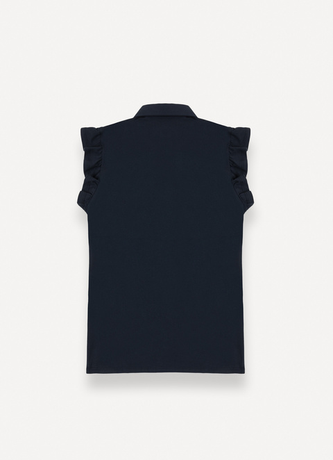 Women’s polo-shirt made from soft stretch cotton piqué fabric. The sleeves are embellished with ruches that add a touch of femininity to the garment.