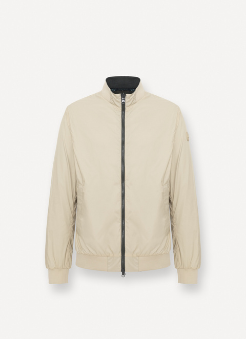 Men's reversible jacket made from ultra-lightweight matte fabric. This bomber jacket is two garments in one, with its ribbed knit hem, cuffs and collar. The option of wearing it on both sides, choosing the colour you prefer - camouflage or solid colour - lets you change your look whenever you want.