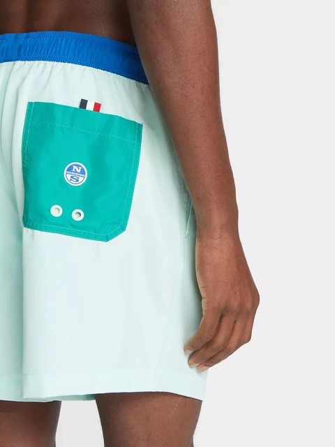 Crafted from recycled polyester with a silky soft texture, these swim shorts reinforce North Sails' signature lifestyle aesthetic and unwavering commitment to sustainability. Their bold graphic attitude is accentuated with a contrast waistband, multicoloured drawstring and logo pocket on the back. Fitted with micro-mesh briefs to ensure comfort and freedom of movement.