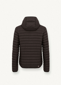 Men’s jacket with hood, padded with light natural down and made of an opaque, lightweight and recycled fabric. Style details such as the matching colour elasticated band and the contrasting colour lining, coexist perfectly with the technicality of the base fabric with water repellent treatment. The new nuances proposed will accompany you throughout the autumnal season with the style of 100 grams of Colmar Originals down.