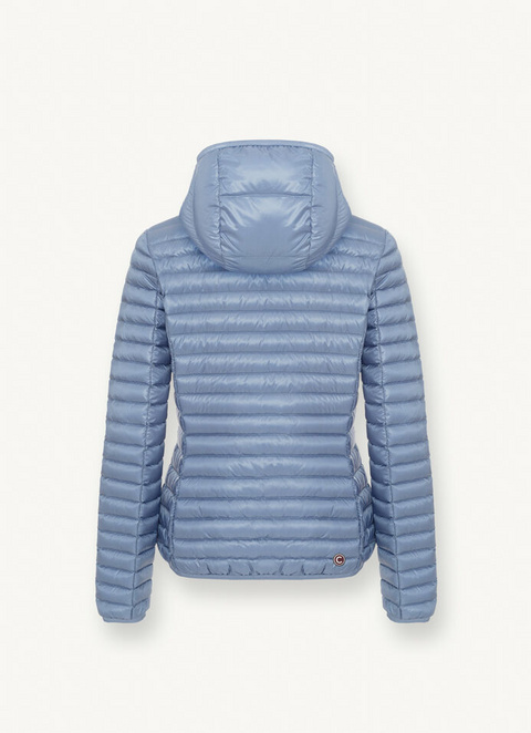 Women's jacket padded with light natural down with regular quilting and made of water-repellent recycled fabric with a soft touch. Sporty details such as regular quilts all over the body, the elasticated band in matching colour that borders the hood, bottom and cuffs, do not detract from the femininity, highlighted by the iridescent effect of the fabric and the waist fit. Live the autumnal season with the style of the iconic 100 grams down jackets by Colmar Originals.
