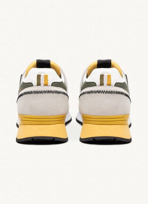 The TRAVIS SPORT COLORS men's shoe is presented in brand new colors with a white textured nylon upper. The Colmar Originals logo matches the same color tones of the inserts on the shoe. The decorative stitching and the suede toe emphasize the lacing while the contrasting elements give movement to the design.