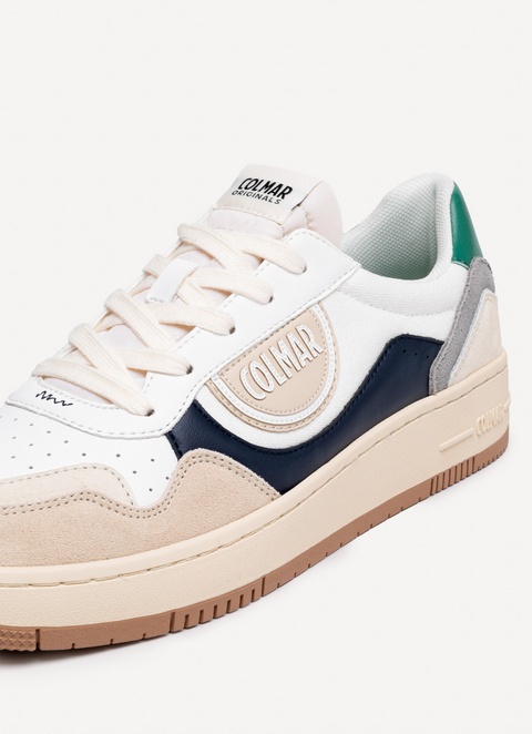 These AUSTIN BRIEF men's shoes in organic cotton with microfibre leather inserts flaunt a classic, timeless look. Colorful details distinguish these shoes, giving them a lot of verve and personality. The cream-coloured sole and brown tread, quilted nylon tongue with a raw cut and exposed sponge, highlight the design of these shoes embellished by the tonal Colmar logo that adds discreet branding.