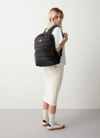 Unisex backpack made in recycled ultralight fabric with water repellent treatment. Lightly padded and quilted, this model has practical reinforced pockets inside for PCs and tablets. On the lower part at the back, there is a small anti-theft pocket where you can put your wallet, keys or, if you travel, your passport.
