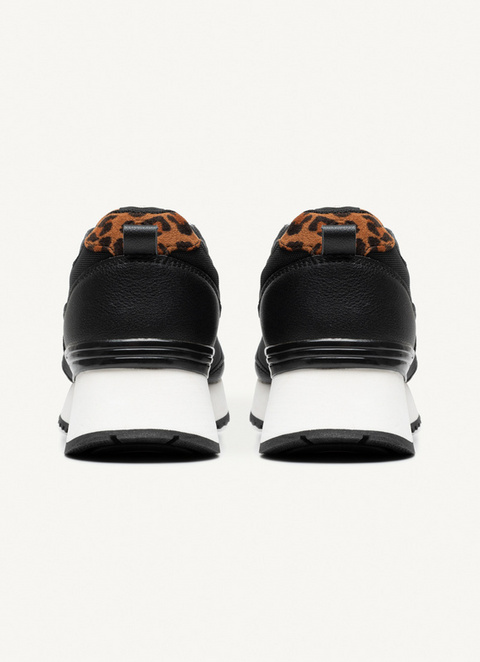 A trendy women's shoe, TRAVIS FIERCE, has a wild soul thanks to the animal print on the toe, tongue and back-collar. The upper is in textured nylon. The shiny detail on the patent-effect PU toe and shiny eyelets bring a bright touch to the shoe.