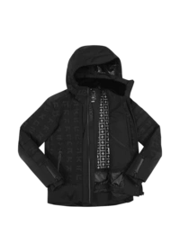 Warm and enveloping, DUE ZERO UNO is a ski down jacket highly suitable on the slopes. The padding is made of synthetic material, fully obtained from recycled PET bottles. The outer material is made of a highly technical 4-way stretch fabric in ECONYL® which reproduces, tone-on-tone, the phrase “We are explorers and we come in peace” translated into the OneMore alphabet. The internal collar is covered with a soft eco-fur that gives a pleasant and comfortable sensation.