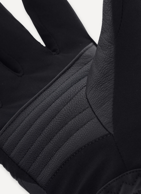 Ski gloves made of 3-layer partially recycled stretch fabric, waterproof (10,000 mm water column) and breathable (10,000 gr/m2/24H). The light quilting on the back gives this model a 3D effect, while the laminated satin insert on the wrist and the leather insert on the knuckles add refinement to the overall look. The palm, made of abrasion-resistant fabric, has a reinforcement in the central part that guarantees good grip and durability over time. Embellished with a soft, abrasion-resistant leather insert. The inner membrane makes the garment even more waterproof. The collaboration with Level, a leading company in the sector, is synonymous with technicality.