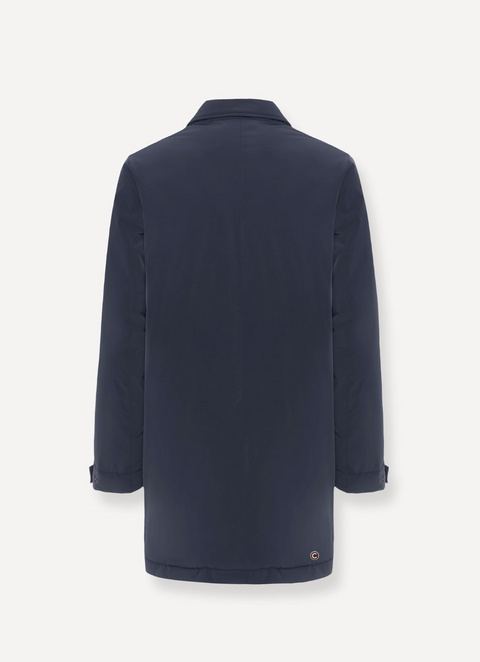 Muška jakna srednje dužine s ovratnikom, izrađena od mat rastezljive tkanine s vodootpornim tretmanom (5000 mm vodenog stupca). Punjenje od prirodnog perja. Vanjski izgled je jednostavan i minimalistički, dok je interijer jedinstven zbog prepoznatljivog prošivanja u obliku slova "V", izrađenog od tkanine koja sprječava prolaz perja i ne zahtijeva šavove. Ovaj kaput čistih linija ima funkcionalne kopče s trakama na manžetama koje omogućuju podešavanje širine. Jednostavan za nošenje, prikladan za urbane ili elegantne prilike.