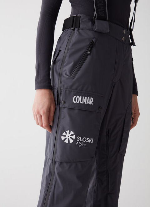 Women’s fully ski salopettes that are fully heat-sealed with detachable straps. A replica of the garment that the Slovenian national ski team will wear for the FW23 season. Made of 100% recycled mechanical stretch polyester, waterproof (15,000 mm) and breathable (15,000 g/m2/24). Inside, the Thermore® Classic wadding, with 50% recycled fibres, guarantees the right degree of warmth. The use of recycled fabric and wadding and Teflon EcoElite™ eco-friendly water repellent treatment are part of the Colmar Green Path project, aiming to respect the environment as much as possible.