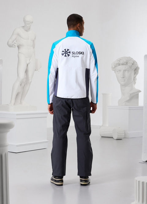 Men’s softshell ski jacket, a replica of the garment that the Slovenian national ski team will wear for the 2024/2025 season. Made of waterproof stretch fabric with a 10,000 mm column, breathable (10,000 g/m2/24h) and water-repellent. It is decorated with beautiful embroidery and equipped with two roomy zipped pockets, and the hem and cuffs are edged with an elastic band that allows you to adjust the fit. Comfortable and practical, worn alone, it is suitable for all winter outdoor situations. It can also be used as an intermediate layer when paired with a shell jacket.