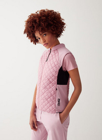 Ženski proš prsluk izrađen od ekološki prihvatljivog, vjetrootpornog i vodoodbojnog 100% recikliranog mini ripstop poliestera. Rastezljivi najlonski detalji, mrežasti umeci i rastezljiva baza samo su neki od elemenata koji obogaćuju ovaj model i omogućuju idealnu termoregulaciju. Udobna i funkcionalna, ima pamučnu podstavu s efektom perja. Mountain Attitude prsluk savršen je kao termo odjeća za sve vanjske prilike ili za kombiniranje kao srednji sloj. Ovaj model opremljen je praktičnom torbom u koju može stati presavijeni odjevni predmet i optimizirati prostor na putovanju ili tijekom sportskih aktivnosti. Zahvaljujući upotrebi recikliranih materijala i ekološki prihvatljivoj obradi, ovaj je prsluk dio projekta Colmar Green Path za poštivanje okoliša.
