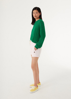 Ženske kratke hlače izrađene od mekog nebijeljenog flisa s mješavinom pamuka. Uz pravilan kroj, ovaj stil ima praktične džepove umetnute u bočne izreze i ženstvenu vezicu sa satenskim efektom koja vam omogućuje stezanje u struku, dodajući glamurozan štih sportskoj odjeći.
