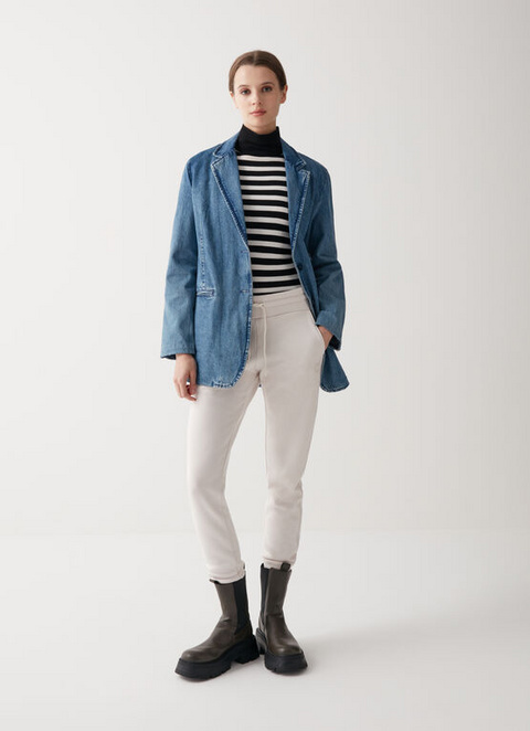 Ženske hlače izrađene od tkanine s izgledom baršuna i četkane iznutra. Model uobičajenog kroja s uzicom za prilagodbu struka i ženstvenim svjetlucavim printom logotipa Colmar koji osvjetljava ovaj kombinezon, čineći ga trendi.