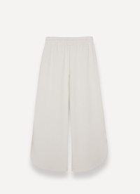 Trousers with rounded hem made from silky soft cotton/modal interlock fabric. Embellished with a feminine silk-effect drawstring with gold-tone logo that adjusts the fit.