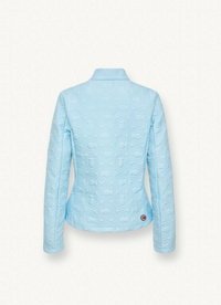 Ženska jakna izrađena od meke mat tkanine u kombinaciji s laganom podstavom i ultrazvučno očišćenom unutarnjom podstavom. Rezultat je toplinski i vodootporan materijal. Neobičan i elegantan, ovaj vintage stil s uzorkom koji podsjeća na logo tvrtke ima pripijeni oblik koji ga čini vrlo ženstvenim. Sportski i elegantan u isto vrijeme, savršen je za prve dane proljeća.
