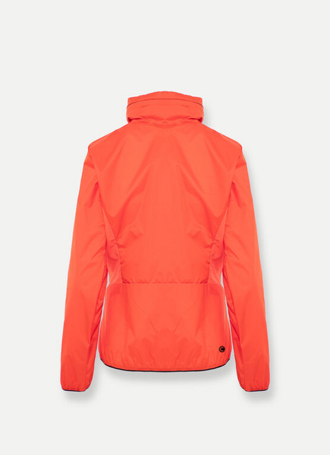Ženska tehnična jakna iz 100 % recikliranega mikro ripstop blaga, vetrovodporna z okolju prijazno vodoodbojno obdelavo. Udobje in idealna regulacija toplote sta zagotovljena z vložki iz raztegljivega blaga z lasersko izrezanimi perforacijami. Odstranljiva kapuca, vstavljena v ovratnik, je udobna in praktična ter zagotavlja popolno zaščito pred vetrom. Ta model vključuje praktično vrečko, v katero je mogoče zložiti jakno, kar optimizira prostor med potovanjem ali pri športnih aktivnostih. Zahvaljujoč uporabi recikliranih materialov in okolju prijazne obdelave je ta jakna idealna kombinacija tehničnosti in skrbi za okolje.