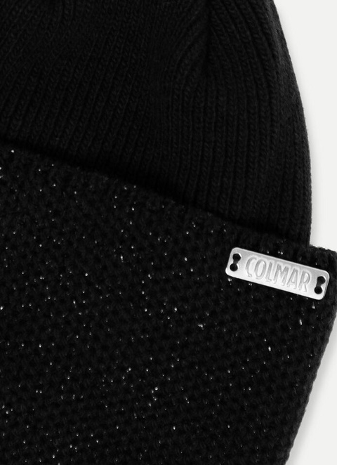 Ženske šešir izrađene od 100% reciklirane vune. Topao i ženstven odjevni predmet visokog lana, posvijetljenih krajeva s lureksom u tonu osnovne mašne. Elegantna metalna ploča s logotipom marke daje moderan i ležeran dodir. Pogodno za razne sportove ili urbane situacije. Korištenje reciklirane pređe dio je projekta Colmar Green Path za zaštitu okoliša.