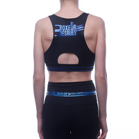 Ženske BOXEUR DES RUES & scaron; sportski top od rastezljivog poliestera. Top je poseban po tankim prugama u kontrastnoj tkanini, koje se isprepliću na prsima i tako stvaraju zanimljiv dekolte. Prepoznatljivi Boxeur print na prednjem i donjem dijelu gornjeg dijela.